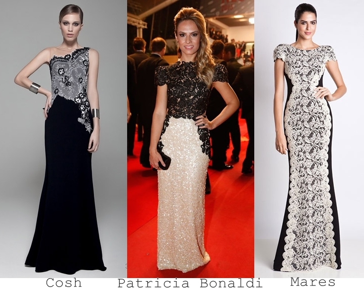 Acho super chique vestidos de festa preto e branco! O da Cosh tem costas nuas ( lindíssimo mostro lá no Facebook) o da Patricia Bonaldi foi usado por ela em Cannes e o terceiro ,da Mares, tem a lateral preta, truque que ajuda a desenhar a silhueta.