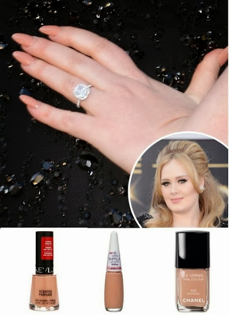 Para combinar com seu vestido preto Adele optou por esmalte neutro.Um pêssego bem clarinho, quase nude.