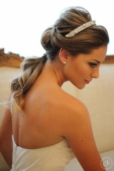 Rabo com acessórios. Pela tiara em strass e pérolas está mais para noivas. Com um outro tipo de tiara ( com pedras coloridas) já poderia ser usado por madrinhas e formandas.