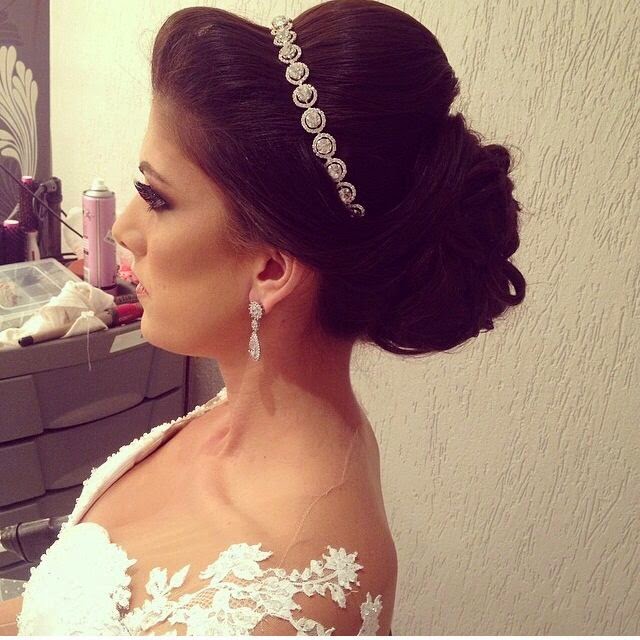 O clássico coque com tiara. Se a tiara fosse de pedras coloridas dava para uma madrinha usar, como não, é só para noivas.