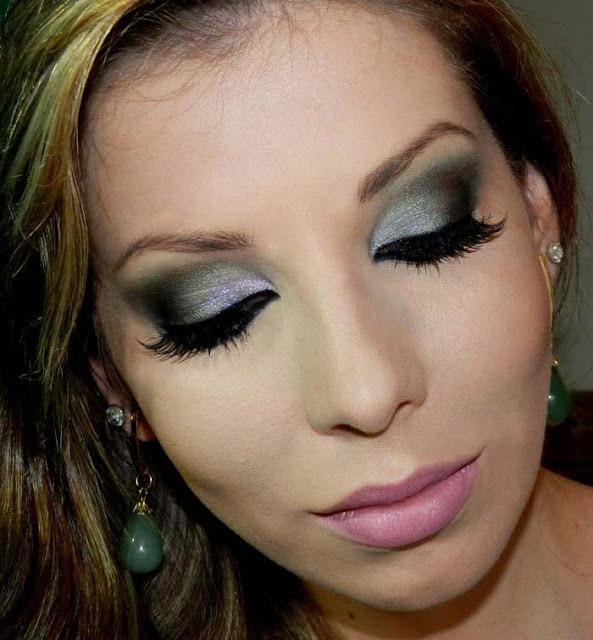 A Lu Ferraz fez esta maquiagem misturando verde e um pouco de lilás. Se for usar com um vestido azul turquesa ou verde tiffany use uma sombra verde mais “fria” ( com o fundo azulado).