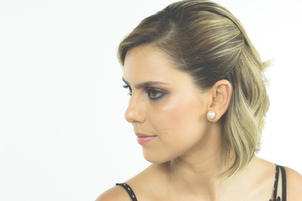 Uma coisa que dá um certo glamour ao look é usar um penteado com volume no alto da cabeça. Isso funciona para cabelos curtos ou longos, é bem bacana.