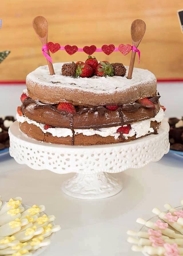 Uma vez fiz um naked cake e ficou muito parecido com este da foto. O problema é que a massa ficou parecendo pedra e optei por não servir o bolo, disse que era bolo cenográfico kkk Mas sem dúvidas alguma é uma boa opção, além de relativamente fácil.