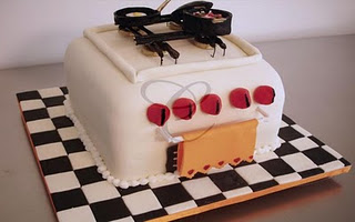 Bolo em formato de fogão.