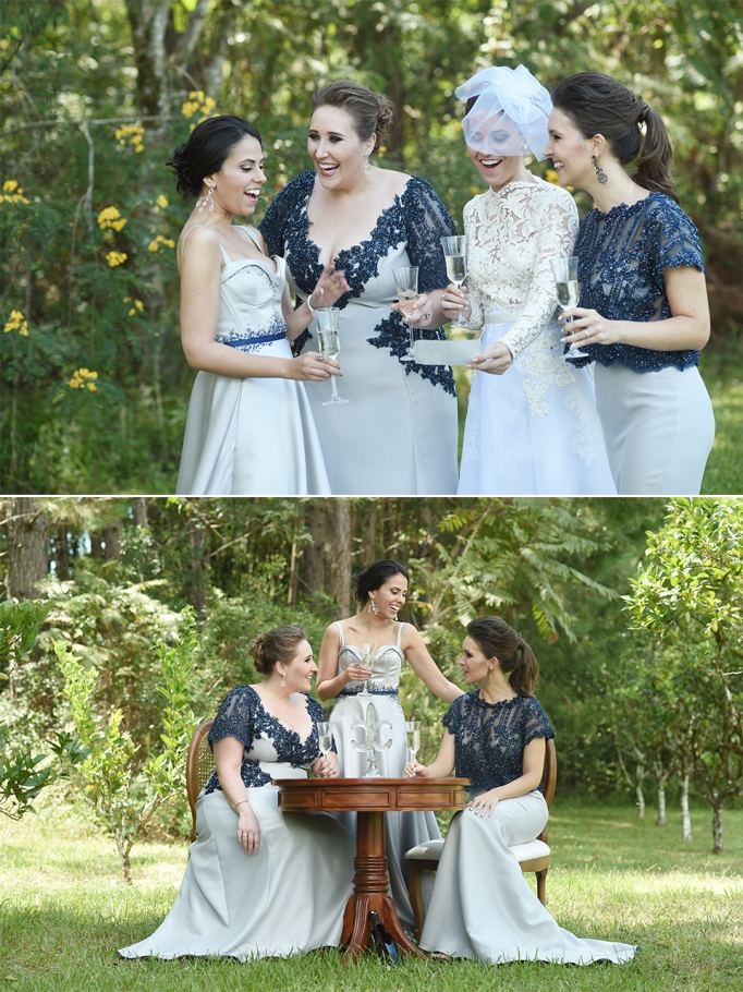 Li hoje que ensaio fotográfico com noivas e madrinhas é tendência. Confesso que nunca tinha visto um ensaio feito só com noivas e madrinhas mas quando vi este me apaixonei. Se existe esta disponibilidade (porque exige uma certa organização né?) acho válido, lindo e divertido.