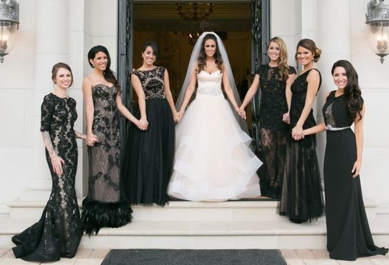 Se você é noiva, adora preto e está pensando em pedir para suas madrinhas usarem vestidos pretos dá uma olhada nas fotos a seguir e se inspire.