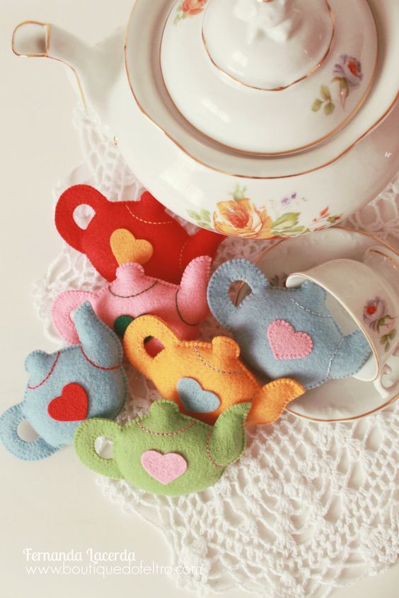 Para quem prefere itens duráveis como lembrancinha (ou convite) tem estas chaleiras de feltro
