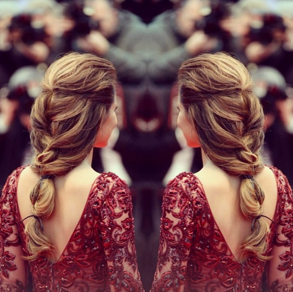 Um coque baixo porém não tão formal,como este usado por Bruna Marquezine pode ser uma boa ideia para um casamento dentro da igreja.
