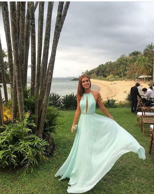 Já como convidada de um casamento em Trancoso optou por este modelo verde claro.