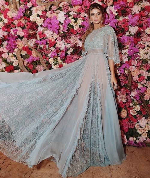 03-A Influencer Mari Dallas, madrinha de casamento, de vestido Fabiana Milazzo. Os vestidos da marca são vendidos em multimarcas de luxo de todo país e em alguns casos em lojas de aluguel, mas como este vestido é da coleção que acabou de ser lançada por enquanto acredito que só está disponível para venda.