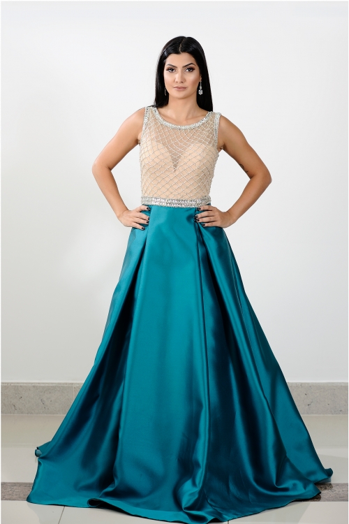 02- Eu adoro estes vestidos que misturam o nude com outras cores. No caso deste a mistura é com bordados em tons de azul, belíssimo!
