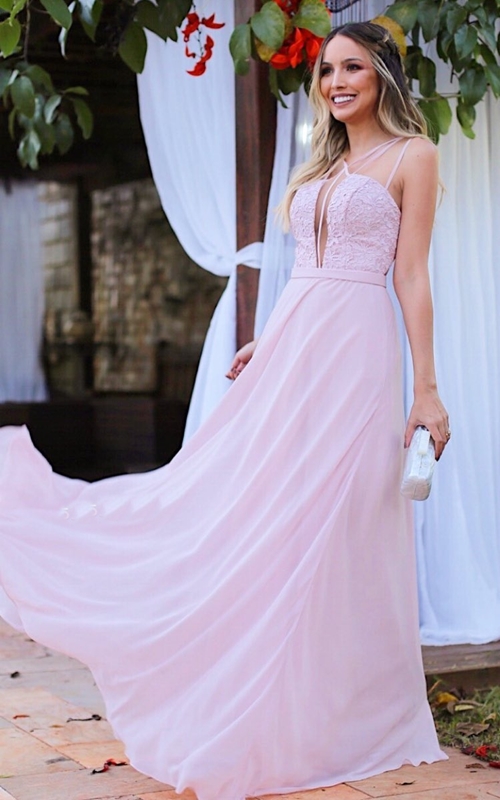 07-Outro vestido longo esvoaçante com uma super fenda! Desta vez no rosé, cor queridinha das madrinhas. À venda na M Glam, contato no (21) 3495-1358.